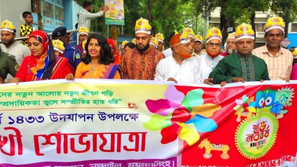 ময়মনসিংহের নান্দাইলে আজ (১৪ এপ্রিল ২৬) মঙ্গলবার উপজেলা প্রশাসনের আয়োজনে বাংলা নববর্ষ-১৪৩৩ উদযাপিত হয়েছে। বৈশাখী উৎসব উদযাপন উপলক্ষ্যে একটি বৈশাখী শোভাযাত্রা উপজেলা চত্বর থেকে শুরু করে প্রধান প্রধান সড়ক প্রদক্ষিণ শেষে পুনরায় বৈশাখী উৎসবে এসে মিলিত হয়।
