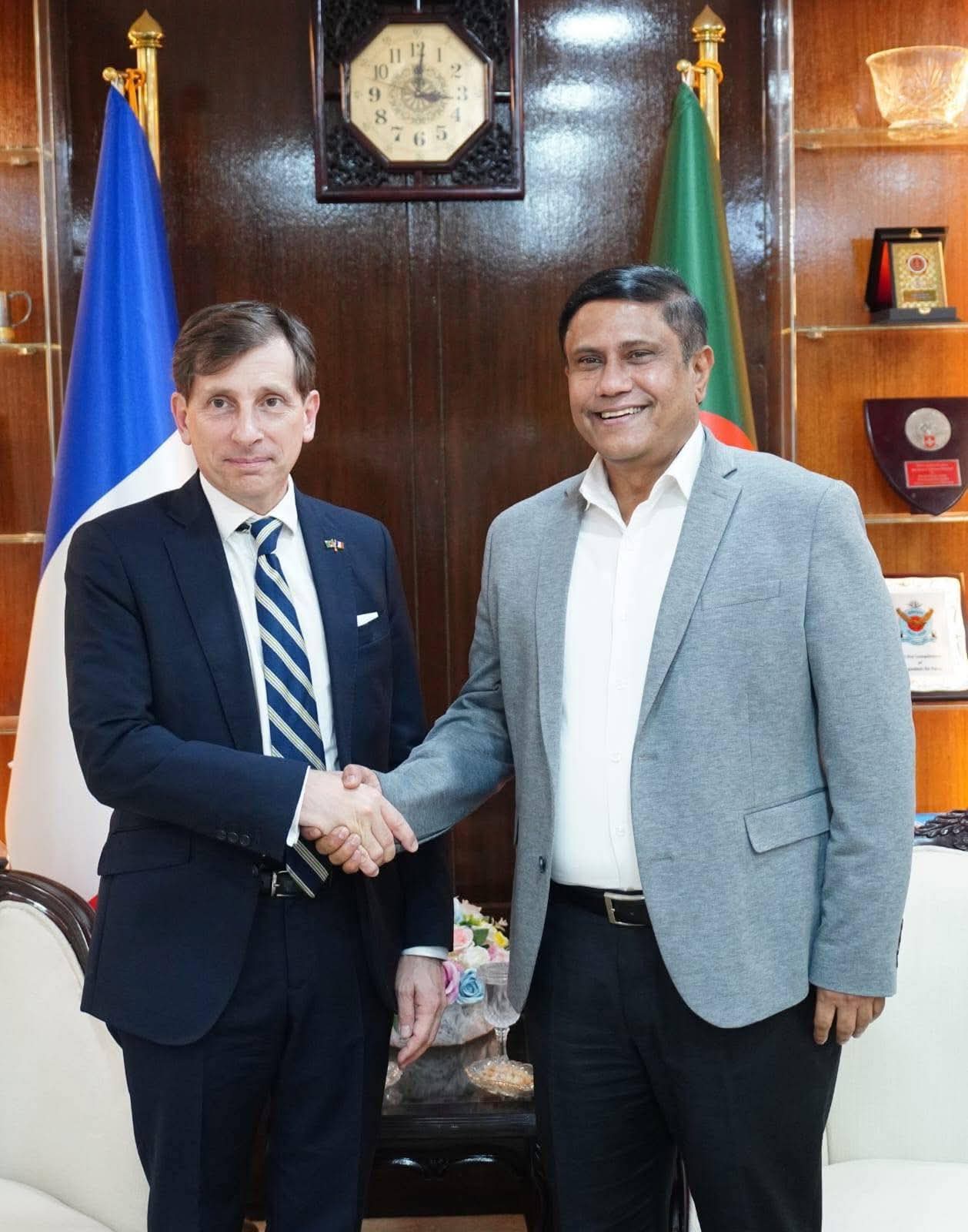 মাননীয় প্রধানমন্ত্রীর প্রতিরক্ষা উপদেষ্টার সঙ্গে ফ্রান্সের রাষ্ট্রদূত এর সৌজন্য সাক্ষাৎ