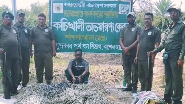 ম.ম.রবি ডাকুয়া,বাগেরহাট সুন্দরবনে অভিযান চালিয়ে ছগির খান (৪০) নামে এক হরিণ শিকারিকে আটক করেছে বনরক্ষীরা। শনিবার (৪ এপ্রিল) সকালে শরণখোলা রেঞ্জের কচিখালী ডিমের চর এলাকা থেকে তাকে আটক করা হয়।