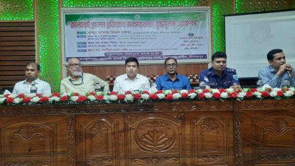 তৌহিদুল ইসলাম শামিম, হিলি প্রতিনিধি:- দিনাজপুরের হিলিতে জালনোট প্রচলন প্রতিরোধে জনসচেতনতা বৃদ্বিমূলক ওয়ার্কশপ অনুষ্ঠিত হয়েছে। আজ সোমবার দুপুরে বাংলাদেশ ব্যাংক রংপুর তত্ত্বাবধানে হাকিমপুর শাখা সোনালি ব্যাংকের ব্যবস্থাপনায় উপজেলা পরিষদ মিলনায়তনে