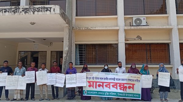 হাবিবুর রহমান, চিলমারী (কুড়িগ্রাম) প্রতিনিধিঃ সারা দেশের ন্যায় কুড়িগ্রামের চিলমারীতে “বাংলাদেশ বেকার মুক্তি পরিষদ” এর আয়োজনে মানববন্ধন অনুষ্ঠিত হয়েছে। রবিবার (১২ই এপ্রিল) সকাল ১১টার দিকে উপজেলা পরিষদ চত্বরের সামনে, “বাংলাদেশ