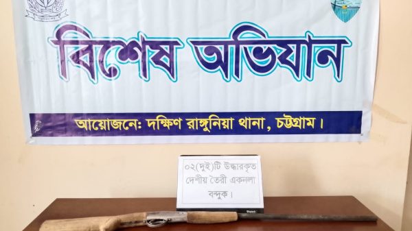 কামরুল ০১৮৮৩০৮৮০৮৪ দক্ষিণ রাঙ্গুনিয়া থানার বিশেষ অভিযানে ০২টি একনলা বন্দুক উদ্ধার। দক্ষিণ রাঙ্গুনিয়া থানার অফিসার ইনচার্জ জনাব মোঃ হিলাল উদ্দীন আহমেদের নেতৃত্বে পুলিশ সদস্যগণ অদ্য ১০ এপ্রিল ২০২৬ খ্রিঃ তারিখ