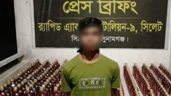 সুনামগঞ্জ প্রতিনিধ সুনামগঞ্জের বিশ্বম্ভরপুর থানা এলাকা থেকে ২৪১ বোতল বিদেশি মদ সহ মো. কাউছার (২০) নামের এক মাদক ব্যবসায়ীকে গ্রেপ্তার করেছে র্যাপিড অ্যাকশন ব্যাটালিয়ন (র্যাব)-৯। বৃহস্পতিবার (৯ এপ্রিল ২০২৬) রাতে
